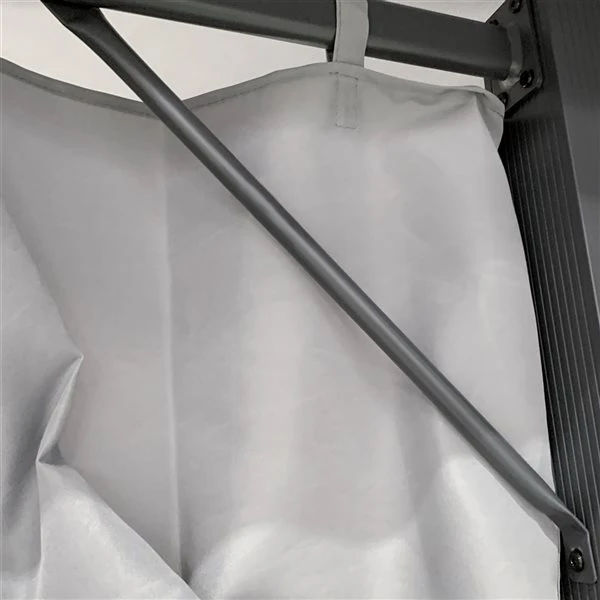 Cet abri de jardin robuste ajoutera une touche d’élégance à votre cour arrière, votre patio, ou n’importe quel espace extérieur. Sa conception spacieuse impressionnera vos invités à coup sûr. Il est parfait pour les réunions de famille, les soirées barbecue, les pique-niques, le camping, les mariages, ou tout autre événement important.Conception haute et spacieuse qui offre suffisamment d’espace pour accueillir plusieurs personnesToit en polyester résistant aux UVCadre en aluminium durable combiné avec une structure en acier pour plus de résistanceToit avec auvent d’aération pour une bonne circulation de l’air à l’intérieurToile avec 8 trous de drainage pour éviter toute accumulation d’eau de pluie sur le toitRideaux qui se fixent facilement à l’aide d’une fermeture auto-agrippante pour créer de l’intimité