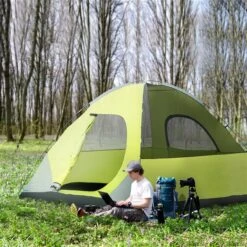 Tente De Camping Outsunny En Polyester Vert Foncé Avec Vestibule