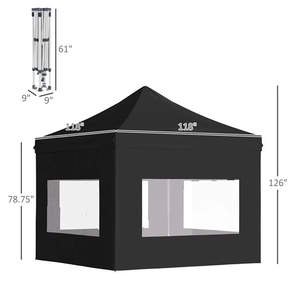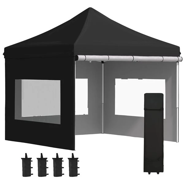 Cette tente de réception pliante est idéale pour les rassemblements en plein air, les voyages de camping, etc. Elle est pourvue d’un cadre en métal solide et de tissu Oxford pour vous protéger des rayons UV. La hauteur ajustable sur 3 niveaux répond à vos différents besoins. Lorsque vous ne l’utilisez pas, rangez-la dans le sac à roulettes et transportez-la facilement. Invitez des amis et détendez-vous sous la grande tente portative pour profiter de vos loisirs.Tente pour réception de 10 pi x 10 pi avec 4 parois amovibles, idéale pour les événements extérieursLe cadre en acier solide assure une utilisation durableL’abri soleil Oxford est recouvert d’un revêtement argenté pour une protection contre les rayons UVPattes ajustables à trois niveaux pour modifier facilement la hauteur4 grandes fenêtres transparentes et une grande porte-rideau à fermeture éclairSac inclus