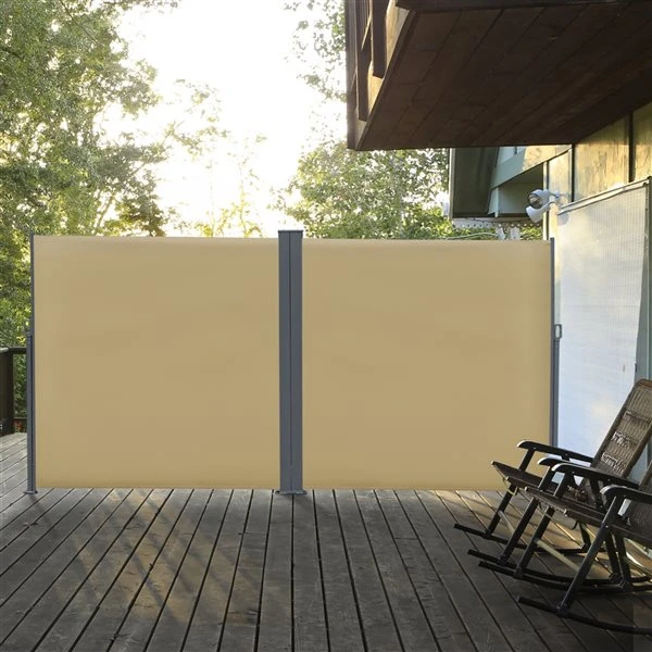Cet auvent latéral bloque les brises légères ainsi que les rayons du soleil et offre un espace d’intimité supplémentaire, idéal pour les cours ou les restaurants.Auvent flexible à double face pour une utilisation extérieure ou intérieureDurable et résistant à la rouilleLe tissu en polyester enduit de polyuréthane est respirant, résistant aux UV et facile à nettoyerFonction de rouleau automatique se tirant facilement par une poignéeRéglable en angle et en longueurAlliage d’aluminium de haute qualité et cadre en métalRessort intérieur avec une bonne flexibilité pour un fonctionnement en douceur de longue durée
