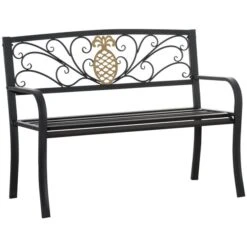 Banc Noir à Deux Places Avec Motif D’ananas Doré Par Outsunny De 45 Po X 35,5 Po