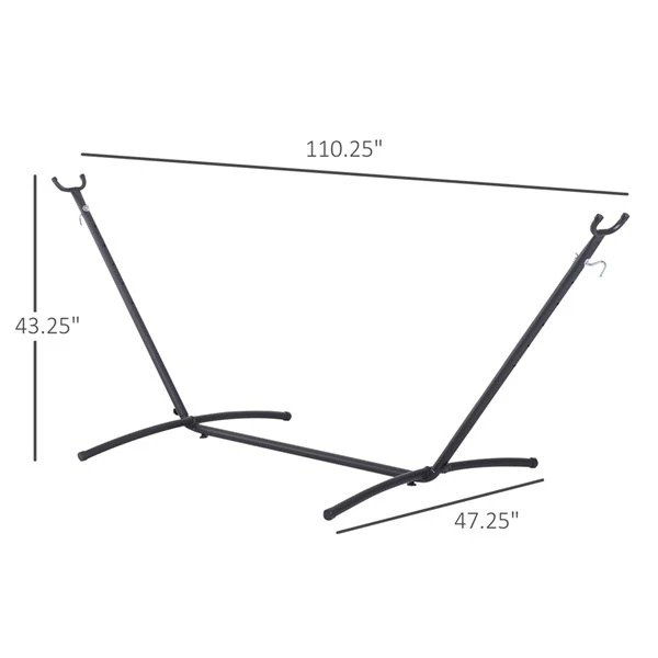 Vous voulez un hamac, mais n’avez pas de place pour l’accrocher ? Avec ce support en métal d’Outsunny, vous n’avez plus besoin de trouver un arbre parfaitement adapté pour accrocher votre hamac préférée.Plus besoin d’un arbreChâssis tubulaire robuste en métal époxy anticorrosion pour un usage pérenne en toute sécuritéConviens à la plupart des hamacsHamac non inclusCapacité maximale: 264 lb