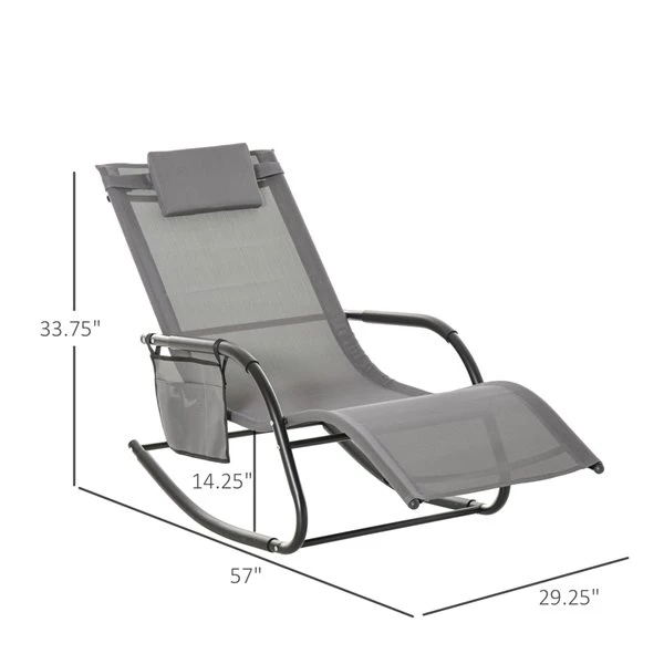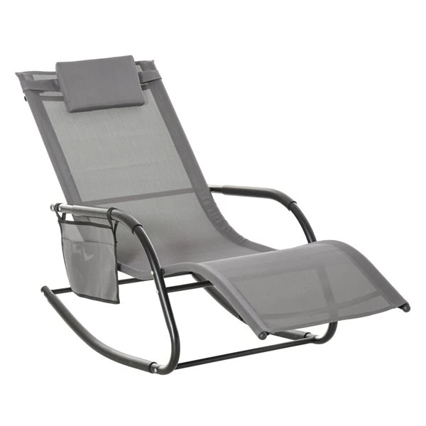 Chaise Berçante Inclinable Outsunny En Métal Noir Avec Siège En Maille Gris