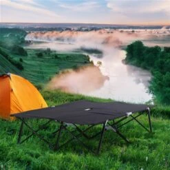 Très Grand Lit De Camp Pliant Par Outsunny En Polyester Noir Pour 2 personnes