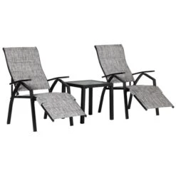 Chaise Longue En Métal Noir Par Outsunny Avec Siège En Tissu Maillé Gris, 3 Pièces
