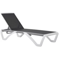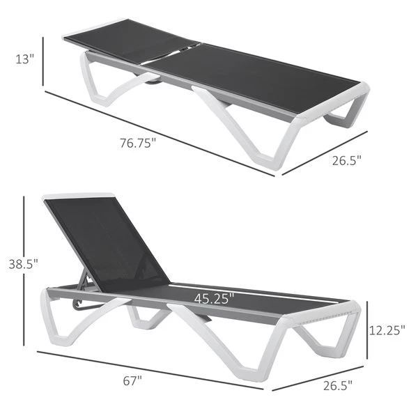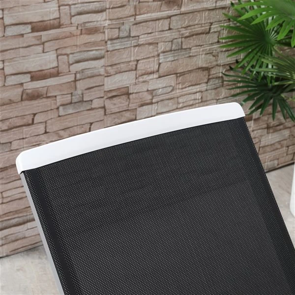 Chaise Longue Outsunny En Métal Blanc Avec Siège Maillé Noir, Ensemble De 2