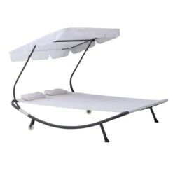 Vous ne pouvez pas apporter la plage à la maison, mais grâce à cette double chaise longue Outsunny, vous pouvez recréer la même atmosphère n’importe quand et dans votre propre cour. Elle est parfaite pour vous faire bronzer sur le bord de votre piscine ou relaxer sur votre patio.Lit hamac pour 2 personnesAuvent avec angle ajustable pour une protection contre le soleilTissu résistant aux intempéries pour une utilisation à l’extérieurLe tissu est tissé et sèche rapidementCadre solide en acier supportant jusqu’à 352 lb2 roues arrière à roulement doux pour un déplacement facile