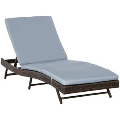 Chaise Longue Stationnaire Outsunny En Résine Tressée Brune Avec Siège Rembourré Gris