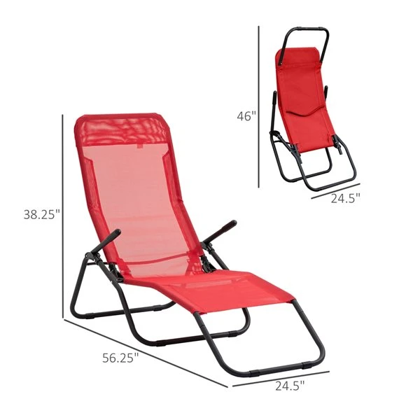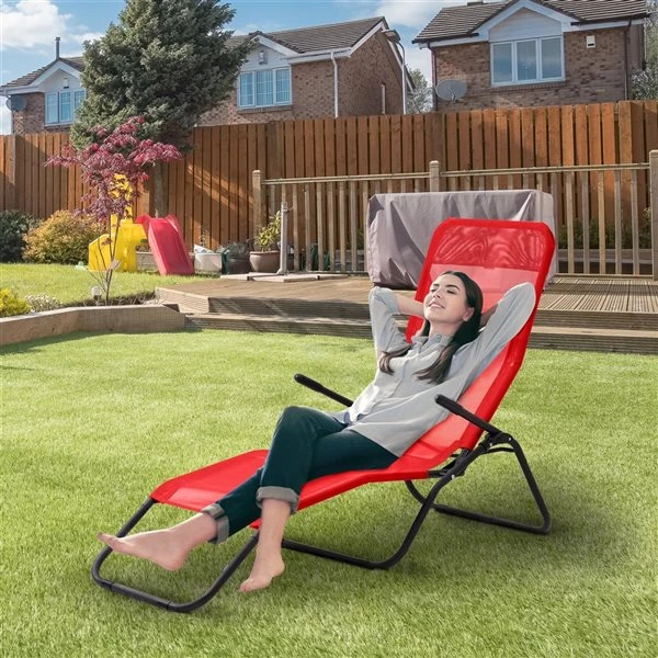 Chaise Outsunny à Posture Zéro-gravité En Métal Noir Avec Siège En Maille Rouge