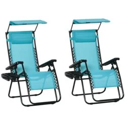Chaises Stationnaires Outsunny à Posture Zéro-gravité En Métal Noir Avec Siège En Maille Bleu Ciel, Ensemble De 2