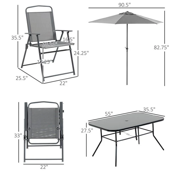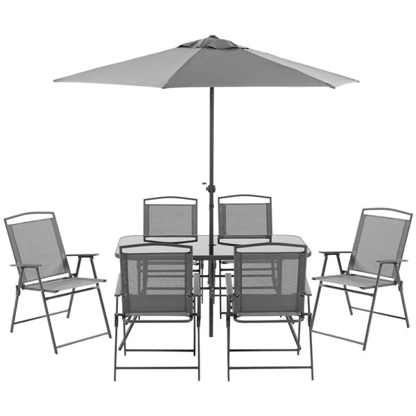 Ensemble à Dîner Extérieur Gris Par Outsunny Avec Parasol, 8 Pièces