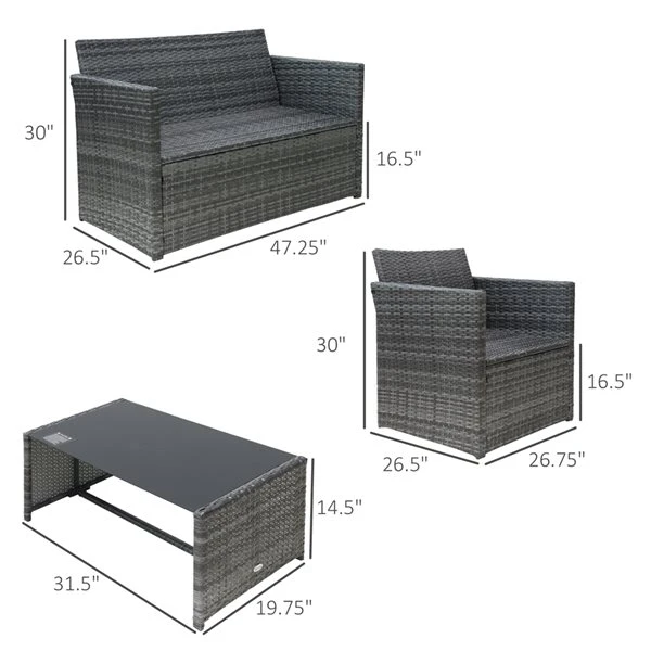 Ensemble De Mobilier Extérieur En Rotin Par Outsunny Avec Coussins Gris, 4 Pièces