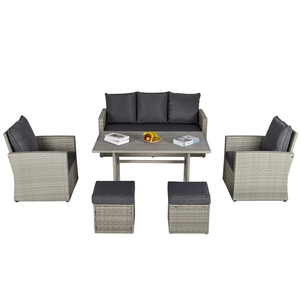Ensemble De Salle à Manger Pour Le Patio Par Outsunny Avec Cadre Gris Et Coussins Gris, 6 Pièces