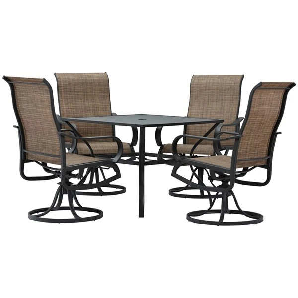 Ensemble De Salle à Manger Pour Patio Avec Cadre En Métal Noir 5 Pièces Par Outsunny Avec Trou Pour Parasol, Brun