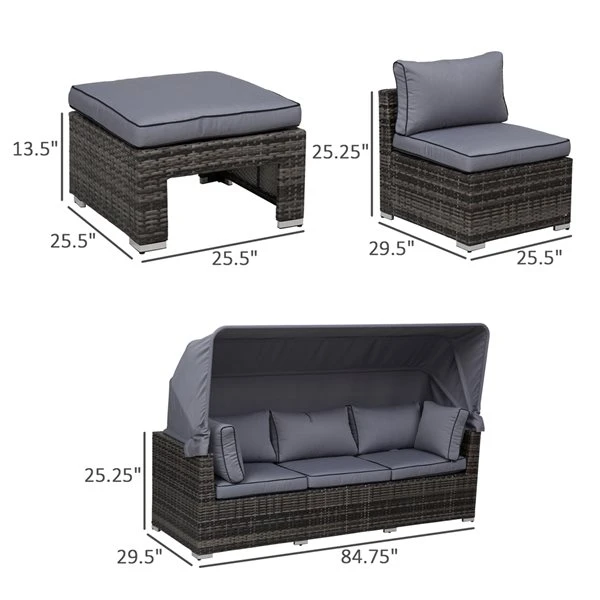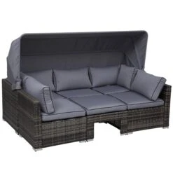 Ensemble Modulaire Pour Le Patio Outsunny En Rotin Avec Coussins Gris, 4 Pièces