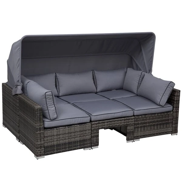 Embellissez votre jardin avec cet ensemble de 4 pièces Outsunny pour patio en rotin. Cet ensemble est fabriqué à partir d’une construction en métal et recouvert de rotin en PE (polyéthylène) pour rendre la structure solide et résistante aux intempéries. Il est livré avec des coussins rembourrés qui offrent plus de confort. L’auvent rétractable vous permet de contrôler la quantité d’ombre lors d’une journée chaude et ensoleillée.La conception classique complémente n’importe quel décor intérieur ou extérieurL’auvent rétractable peut facilement s’ouvrir et se fermer avec un ressort à gazConstruction en rotin PE et cadre en acierCoussin rembourré épais pour un confort optimalLa table basse peut être utilisée comme tabouret repose-pieds