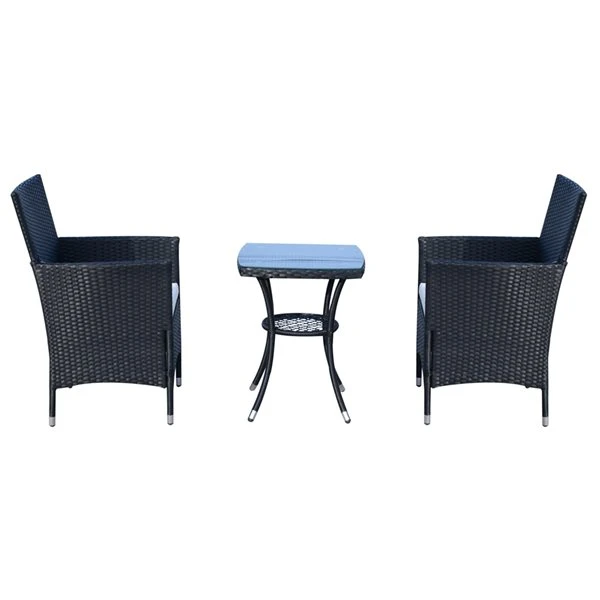 Ce magnifique ensemble vous permet d’apporter à la fois fonctionnalité et élégance à votre espace de patio. Il est idéal pour les petits espaces.Comprend 2 chaises et 1 table basse pour une utilisation intérieure ou extérieureFabriqué en acier solide et en osier PE de haute qualitéOsier PE durable résistant à l’eau et aux rayons UV pour un nettoyage et un entretien facilesSièges avec coussin rembourré et épais pour plus de confortHousses de coussin amovibles, lavables et résistantes à l’eau avec fermeture éclairDessus de table en verre trempé