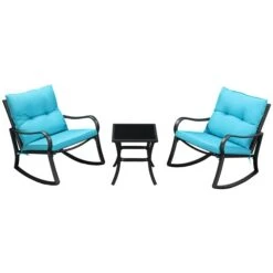 Soyez le premier à laisser votre avis sur “Fauteuils Berçants Et Table D’appoint Outsunny En Métal Noir Avec Siège Coussiné Bleu, Ensemble De 3” Annuler la réponse