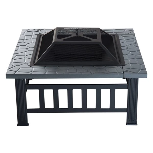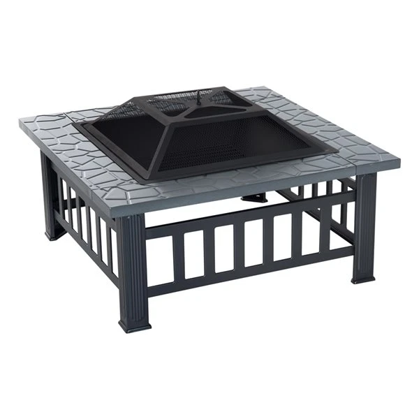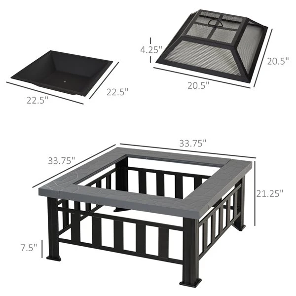 Foyer Au Bois Pour L’extérieur Par Outsunny Carré En Acier Noir