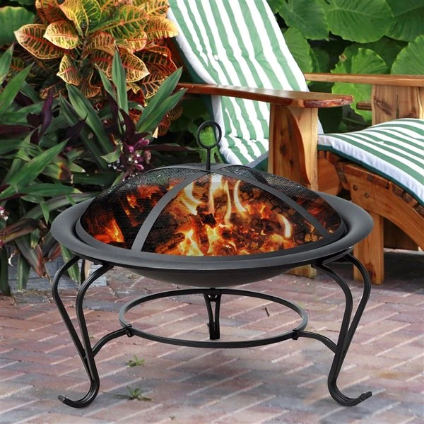 Foyer Au Bois Rond En Acier Noir Par Outsunny Pour L’extérieur