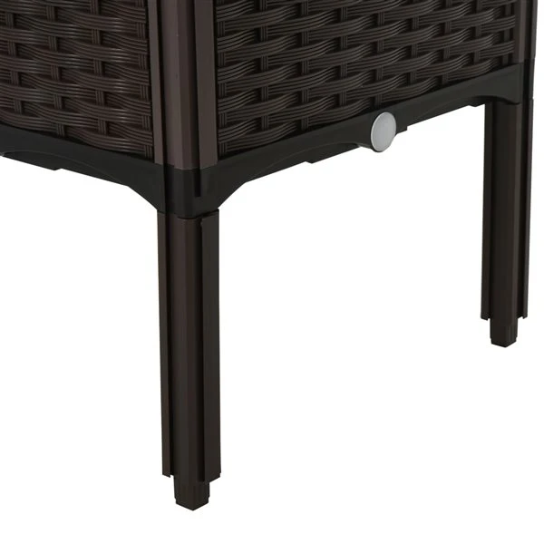 Fabriquée en polyéthylène haute densité (PEHD) protégé contre les UV avec un design simulé de style rotinRéduis la fatigue du dos et des genoux et aide également à protéger les plantes des lapins et autres parasitesLe nouveau design rend la jardinière facile et pratique à installerDoté d’un disque d’arrosage automatique et de trous de drainage, offrant un espace pour réserver l’eau excessive et les boîtes de jardinLa jardinière est légère pour un transport et un placement facile