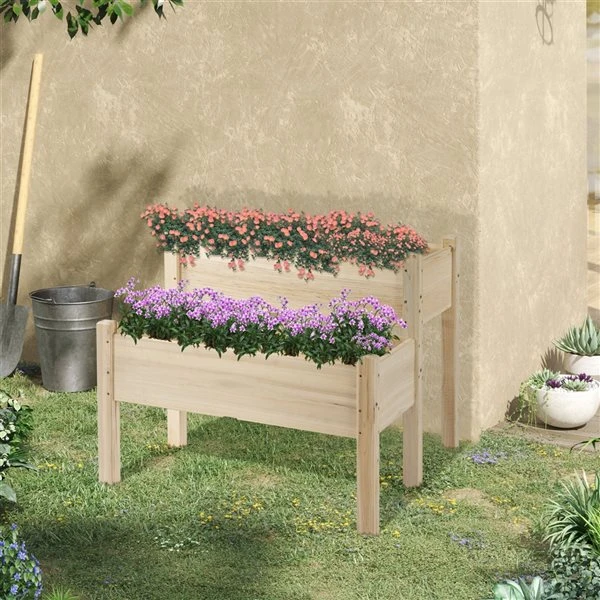 Jardinière Surélevée à 3 niveaux En Bois Naturel Par Outsunny De 23,5 po L. X 30,25 po H.