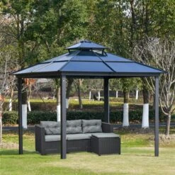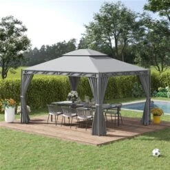Abri De Jardin Gris Anthracite De 9,8 Pi X 9,8 Pi Par Outsunny Avec Double Toit/rideaux