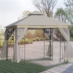 Abri De Jardin Outsunny En Métal Carré Blanc Crème De 10 Pi X 10 Pi Avec Toit En Polyester