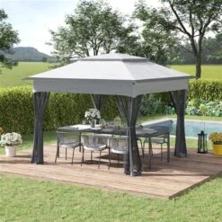 Abri Soleil Repliable Outsunny En Métal Carré Gris De 12 Pi X 12 Pi Avec Toit En Polyester