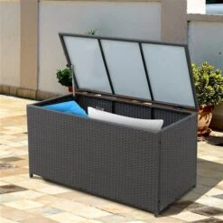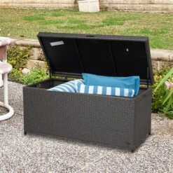 Coffre De Rangement Pour La Terrasse Outsunny En Plastique Gris De 56 Po X 26 Po, 76,6 Gal