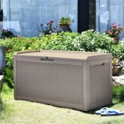 Boite De Rangement Extérieure Brun Pâle De 25 Po X 48 Po Par Outsunny