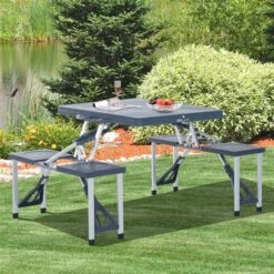 Table De Pique-nique Pliante Par Outsunny Rectangulaire En Plastique Gris Foncé De 33,25 Po
