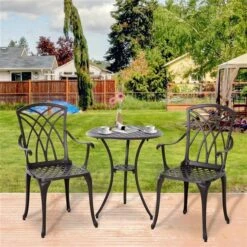Ensemble De Mobilier Extérieur 3 Pièces Par Outsunny En Aluminium Noir Avec Trou Pour Parasol