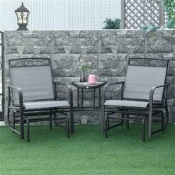 Berceuse Extérieure En Métal Avec Table Basse Par Outsunny, 3 Pièces