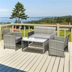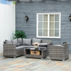 Ensemble De Fauteuils De Jardin 4 Pièces En Osier Avec Table Et Coussins Par Outsunny