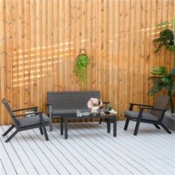Ensemble De Mobilier Extérieur En Plastique Avec Coussin Gris Par Outsunny, 4 Pièces