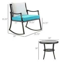 Chaise Berçante Avec Table Par Outsunny Et Coussins Turquoise, 3 Pièces