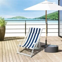 Chaise Longue En Bois Blanc Par Outsunny Avec Siège En Polyester Bleu Et Blanc
