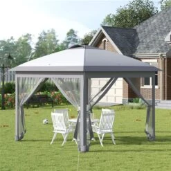 Abri-soleil Escamotable Gris Pâle De 10 Pi X 10 Pi Par Outsunny Avec Sac De Transport Inclus