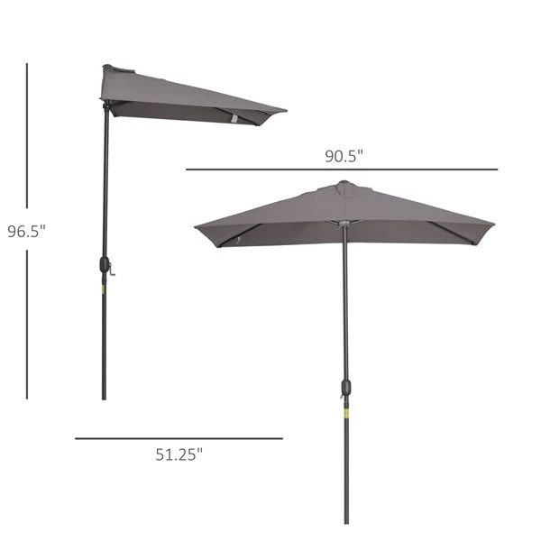 Parasol En Forme De Demi-lune Gris De 4 Pi Par Outsunny