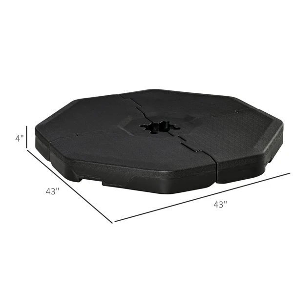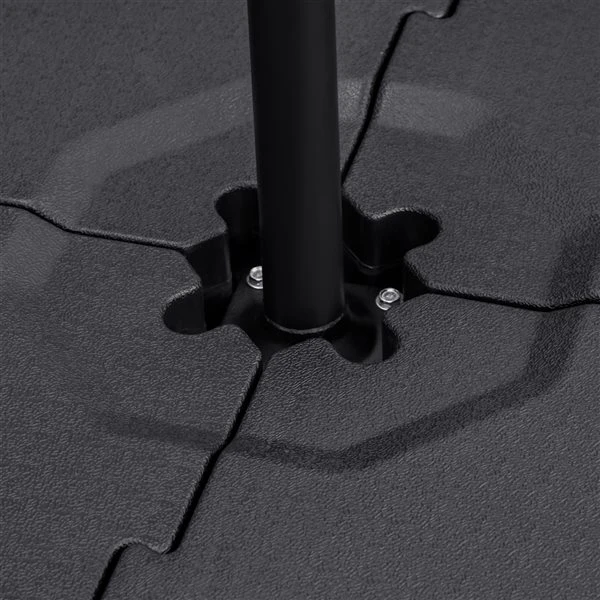 Assurez-vous que votre parasol suspendu soit toujours maintenu fermement en place avec cette base pour parasol par Outsunny. Elle se compose de quatre pièces qui s’emboîtent facilement. Lorsqu’elles sont vides, les pièces sont légères et faciles à transporter, ce qui vous permet de choisir facilement l’endroit idéal pour installer votre parasol.Cette base de 4 pièces est conçue pour les parasols suspendus sans fonction de rotationCette base de parasol pèse jusqu’à 229 lb lorsqu’elle est remplie d’eau, 275 lb lorsqu’elle est remplie de sable et 308 lb lorsqu’elle est remplie d’eau et de sableFabriqué en plastique HDPE avec revêtement pour plus de stabilité et de durabilité, et adapté à un usage extérieurChaque pièce de la base est munie d’une poignée intégrée qui permet de la déplacer et de la transporter facilementMaintient votre parasol en position verticale et en place pour procurer plus d’ombreChaque pièce de la base est dotée d’un trou de remplissage, facile à remplir et à nettoyer