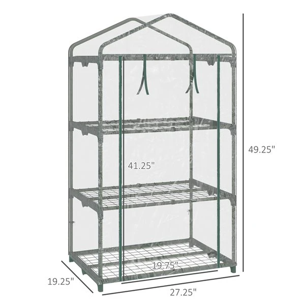 Sortez vos doigts verts n’importe où, que ce soit sur un balcon ou dans un endroit désigné, grâce à cette serre compacte avec étagères à 3 niveaux d’Outsunny. Elle est faite d’acier robuste afin de s’assurer qu’elle reste droite et stable tout au long de la journée, avec une housse en plastique durable pour protéger vos plantes à l’intérieur du froid. La porte enroulable permet un accès facile à l’intérieur et peut être fixée avec les attaches. Cette serre peut être un excellent choix pour commencer à cultiver vos propres produits.Mini serre adaptée aux petits espacesÉtagère à 3 niveauxConvient aux plantes, légumes, fruits et fleursGrande porte enroulable à fermeture à glissière pour assurer une bonne ventilation et accéder facilement aux plantesHousse en PVC pour laisser entrer la lumière du soleil et garder l’intérieur chaud