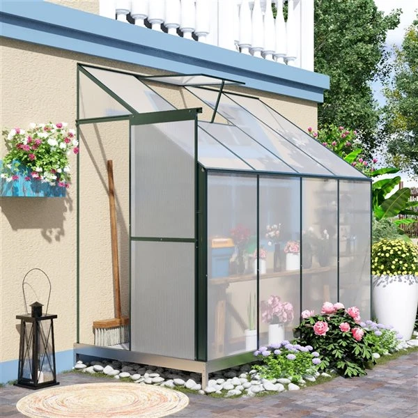 Cette serre extérieure offre l’environnement protégé dont vous avez besoin sans avoir à dépenser des sommes exorbitantes. Le cadre en aluminium thermolaqué et les feuilles de polycarbonate résistant aux UV garderont vos plantes en sécurité.Serre en polycarbonateToit rabattable avec évent réglable à 5 positions assurant une bonne circulation d’airRésistant aux rayons UV et fournit plus de 90 % de transmission de la lumièreCadre en alliage d’aluminium thermolaqué avec base galvaniséePorte coulissante offrant un accès facile