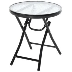 Apportez une touche d’élégance à votre espace extérieur avec cette superbe table ronde style bistro. Fabriquée avec une structure en métal robuste et durable, elle est dotée d’un magnifique dessus de table en verre trempé résistant aux taches et facile à nettoyer. Elle est parfaite pour manger et se détendre avec des amis toute la journée.Compacte et éléganteDessus de table en verre trempé de 0,25 po d’épaisseurLe cadre en métal est suffisamment durable pour résister à la pluie et au ventLa boucle de sécurité sur les pattes peut empêcher le pliage accidentel et augmenter la stabilitéLa conception pliable permet un transport et un rangement faciles lorsque la table n’est pas utilisée