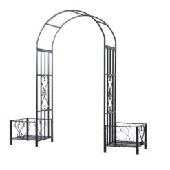 Ajoutez du charme Ă votre jardin et crĂ©ez une magnifique entrĂ©e grâce Ă cette Ă©lĂ©gante et dĂ©licate tonnelle par Outsunny.CrĂ©e un dĂ©cor Ă©lĂ©gant dans les cours ou les jardinsIdĂ©ale pour y installer des vignes grimpantes ou des fleursAjoutez n’importe quel revĂŞtement et faites pousser des fleurs dans les pots latĂ©raux inclusConstruite de tubes d’acier recouverts d’Ă©poxy noir rĂ©sistant aux intempĂ©ries